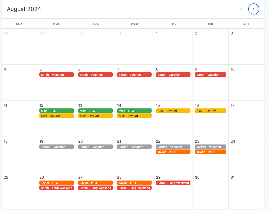 Problem: Too many people take vacation at the same time, making it hard for the team to get work done.